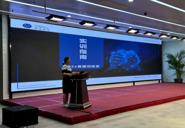 暑期实训营学员代表-来自南京邮电大学的朱涛涛同学代表实训营的学员作了发言。学员们期待实训期间所取得的宝贵经验和技能,承诺将持续努力锻炼技能,并应用于未来的学习与开展。同时,他们感谢实训营为他们给予机会,并表示将珍惜这段宝贵的经历。
